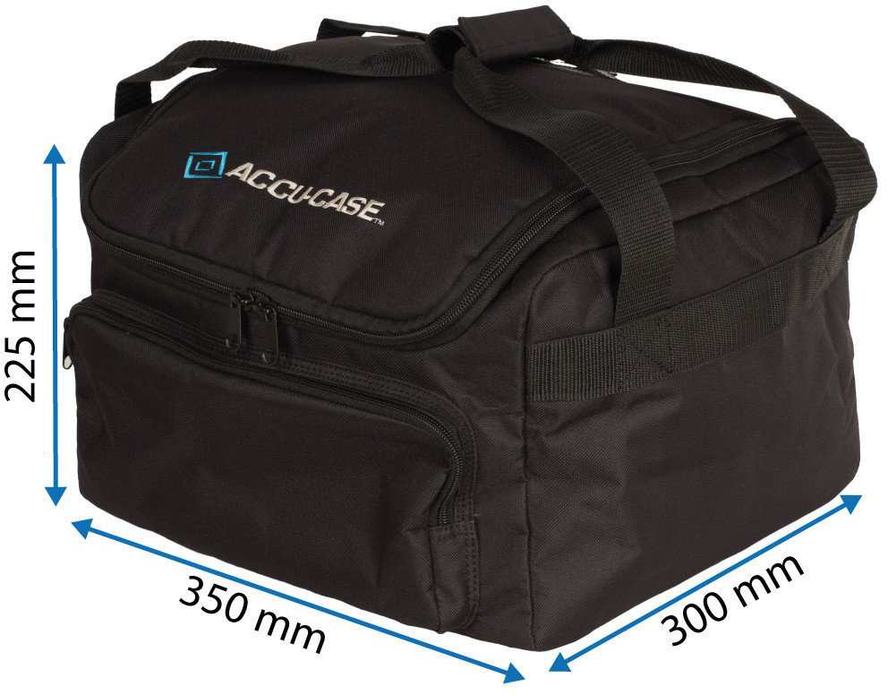 Puha párnázott védő tok értékes felszereléshez. Több fényhatást és kiegészítőt véd. Minden táska extra cipzáras zsebbel rendelkezik kisebb alkatrészekhez, például adapterekhez, kábelekhez vagy csavarokhoz. Az Accu-Case puha tokok bizonyították, hogy meghosszabbítják a berendezések élettartamát, megakadályozva a karcolásoktól, a karcolásoktól és az ékezetektől, valamint biztonságos értékes helyet az autóban. Méretek: L: 350 mm W: 300 mm H: 225 mm.