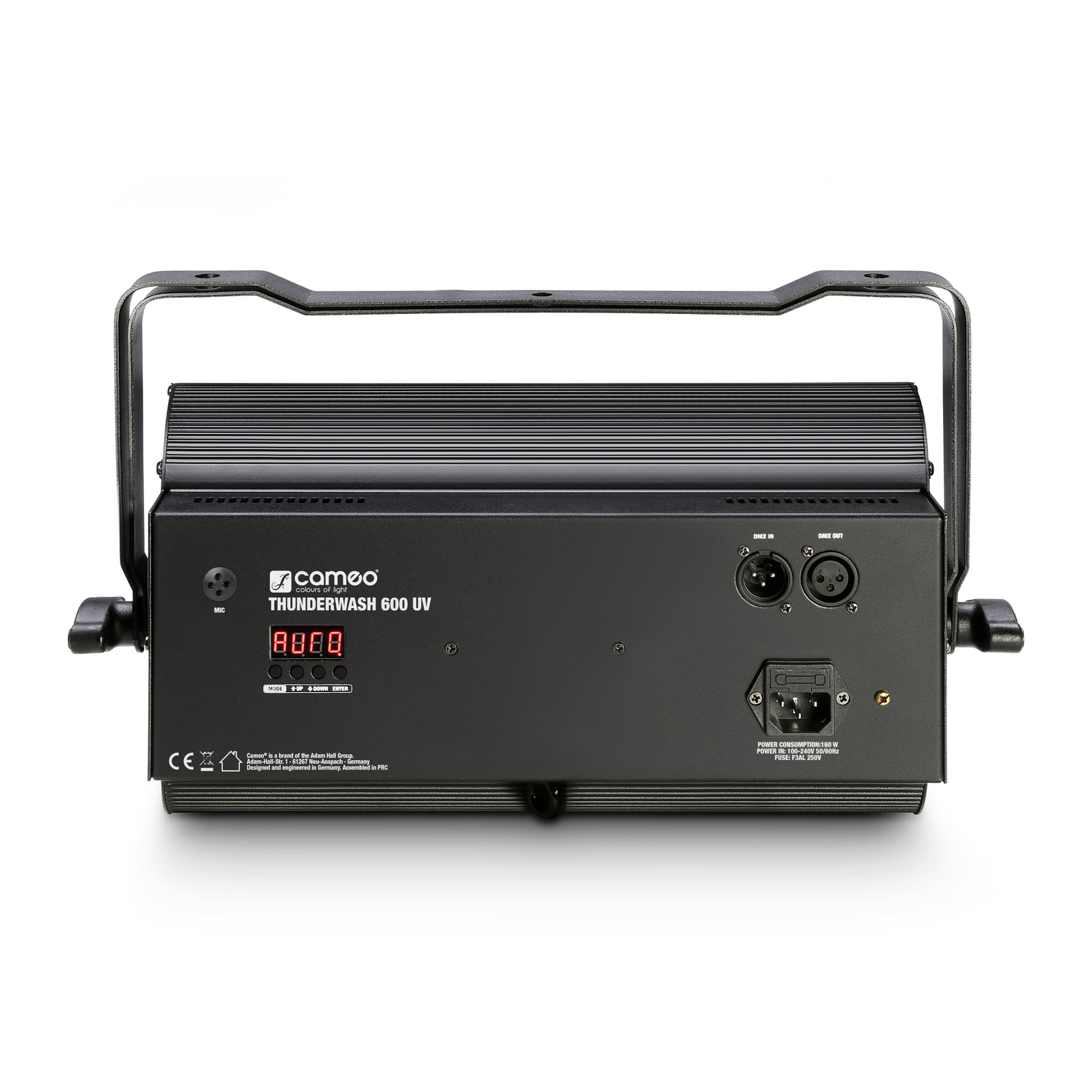 A menü navigációja és konfigurációja gyerekjáték a világos LED kijelzőnek köszönhetően, amelyen mód, enter, fel és le gombok is találhatók. A Thunder Wash 600 UV tartós, teljesen fémből készült házban, 3 tűs DMX és IEC tápcsatlakozókkal, valamint univerzális rögzítőkonzollal rendelkezik.