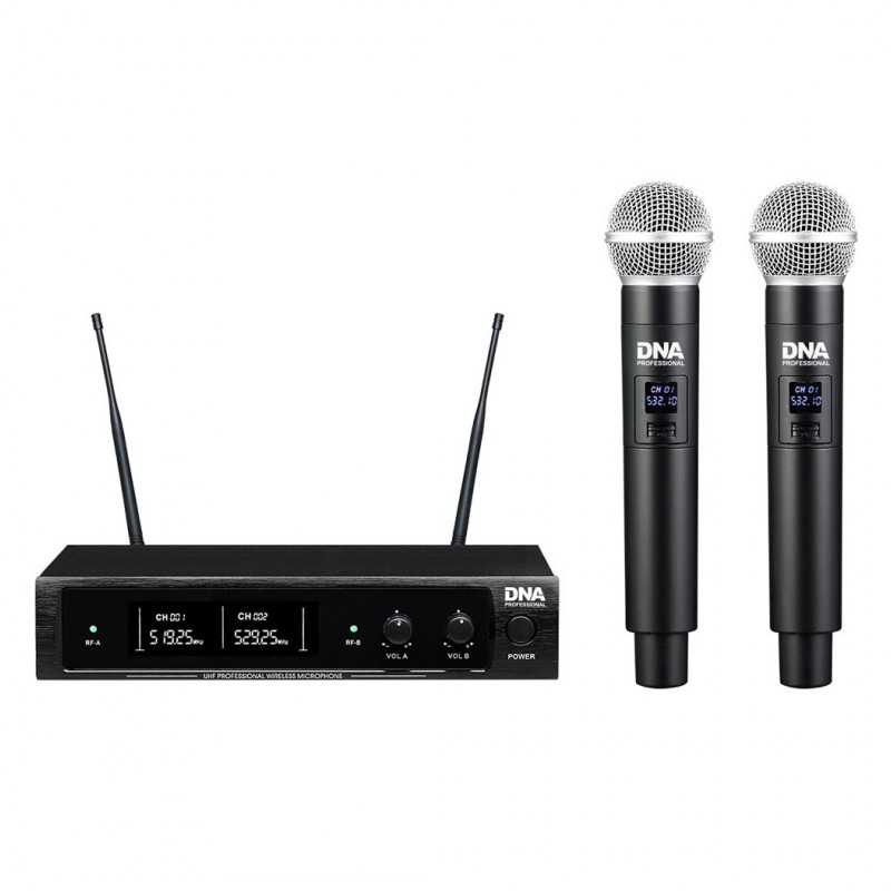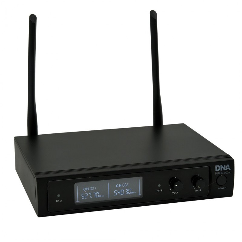 A DNA DJ DUAL VOCAL egy kiváló minőségű vezeték nélküli mikrofonrendszer, amely két dinamikus kézi mikrofont és egy UHF rádióvevőt tartalmaz. A készlet ideális hangosítási rendszerként esküvői zenekarok, DJ-k, rendezvénytársaságok, játék-előadók, karaoke, valamint különféle kulturális és oktatási intézmények számára.