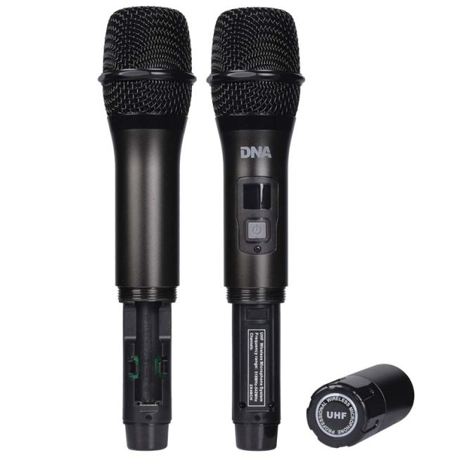 A DNA FU DUAL VOCAL ideális vezeték nélküli mikrofonkészlet zenekarok, szólóban vagy duettben éneklő énekesek, valamint panelbeszélgetéseket, tréningeket és különféle tematikus találkozókat szervező magánszemélyek és cégek számára. Ezek is nagyszerű vezeték nélküli mikrofonok karaoke számára. Ha kíváncsi arra, hogy melyik vezeték nélküli mikrofont válassza, mindenképp nézze meg a DNA FU DUAL VOCAL készletet. Ez két professzionális, mégis viszonylag olcsó vezeték nélküli mikrofon a vevővel együtt, szuper áron kapható üzletünkben!