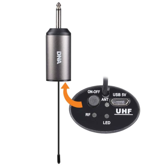 Az UHF vevő nagy érzékenységű antennával és egyszerű 6,3 mm-es jack csatlakozóval van felszerelve, így közvetlenül erősítő vagy színpadi keverő aljzatba csatlakoztatható. Ez egy nagyon kényelmes megoldás, amely kiküszöböli a további kábelek szükségességét. A központ egy kapcsolót és egy konnektort, valamint egy jelszintet és egy akkumulátor töltöttségi jelzőt tartalmaz.
