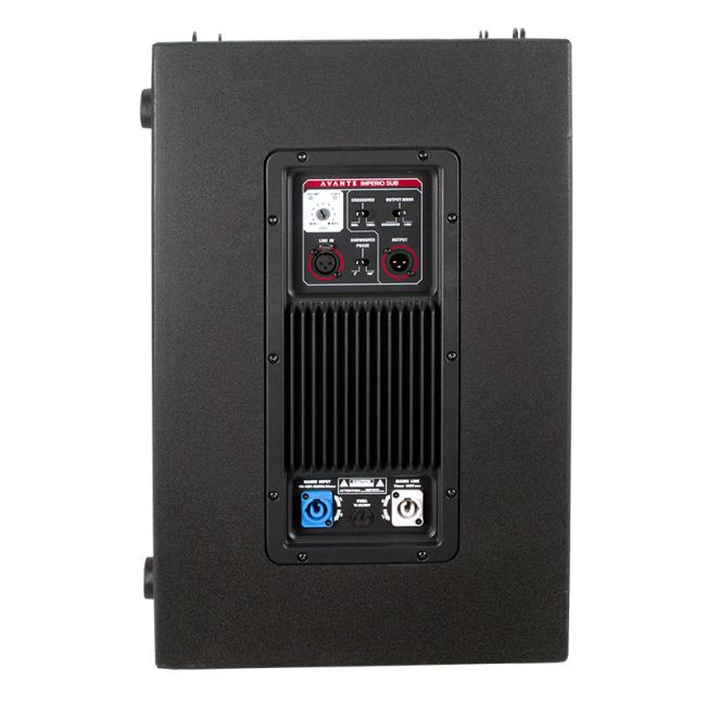Dupla 10″-os mélynyomó 700 watt RMS teljesítménnyel, D osztályú végerősítővel. Az Imperio Mini Line Array rendszer része.