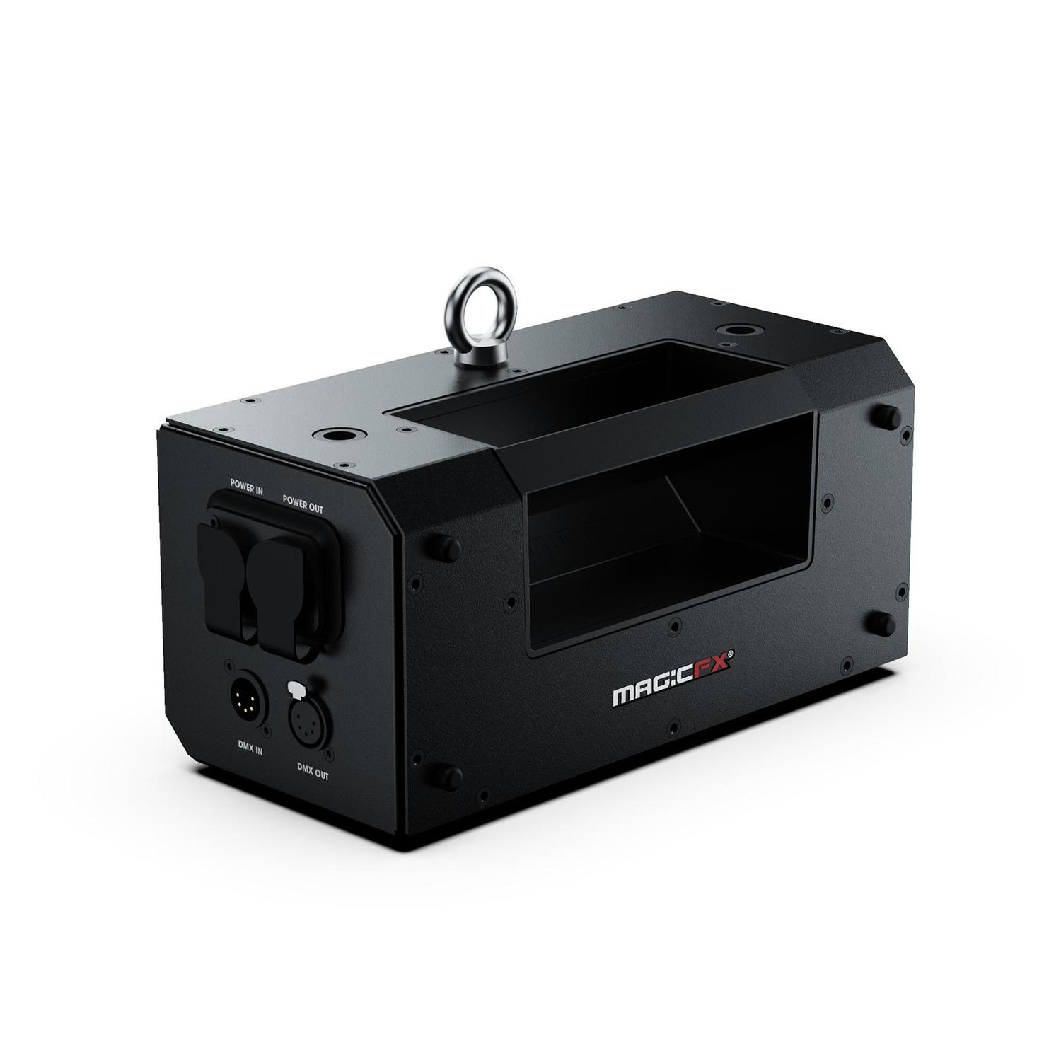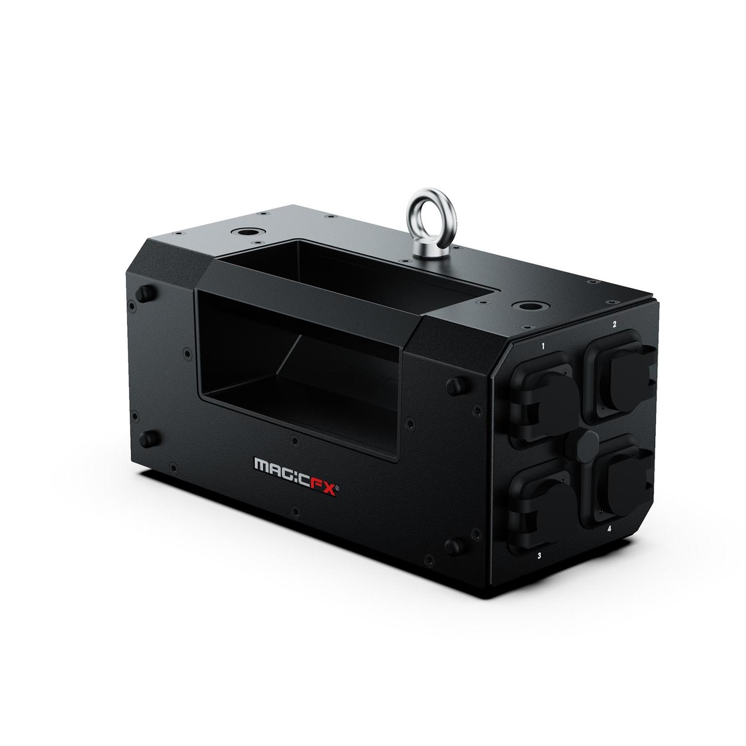 A MAGIC FX COMBINER BOX a DMX-t és a kar jelét egyesíti, hogy egyetlen kábelen futhasson. Egy biztonsági vezetéket ad ki, amely össze van kötve…