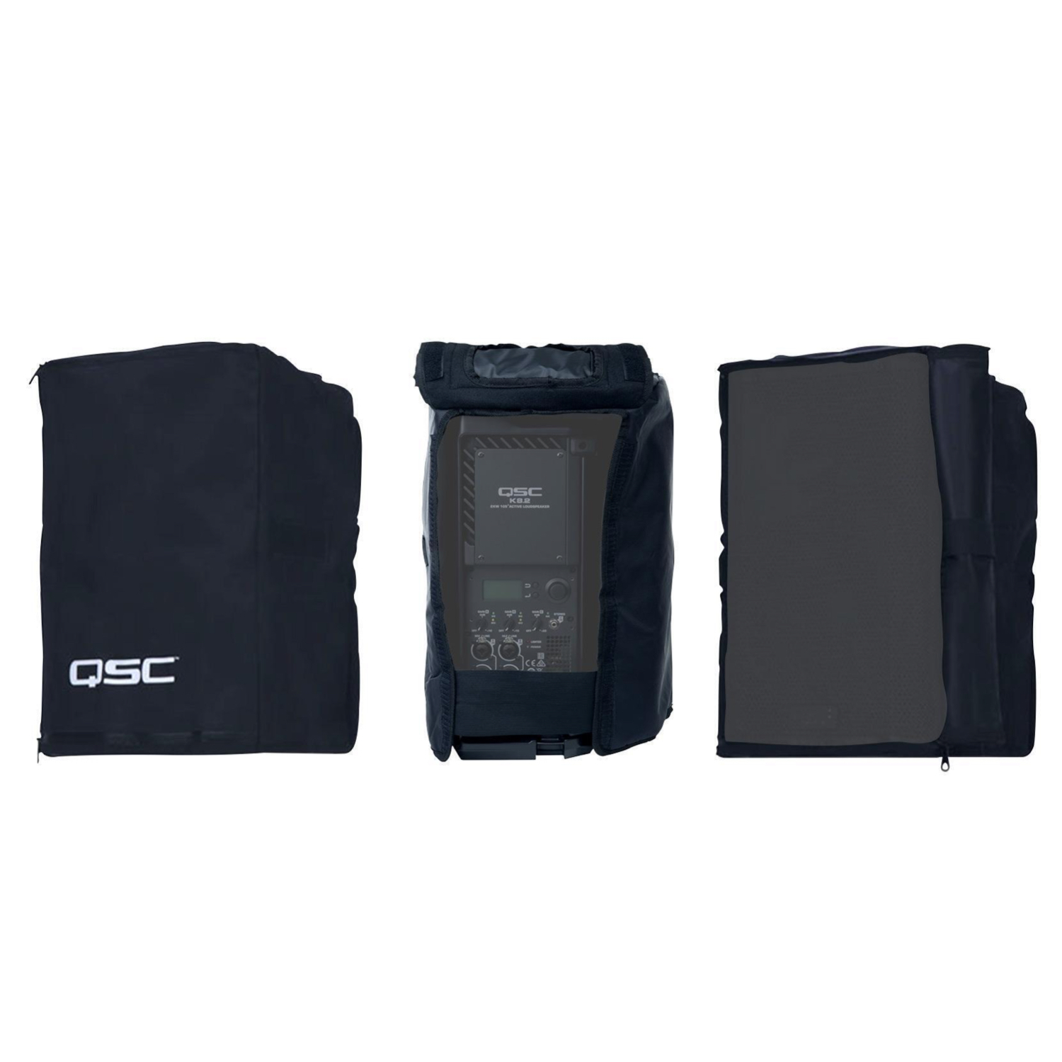 Védőhuzat: vízhatlan tok QSC K10 és K10.2 hangfalhoz, nylonból készült, átmeneti védelmet nyújt a környezeti ártalmakkal szemben, lecsatolható első és hátsó rész, fekete szín